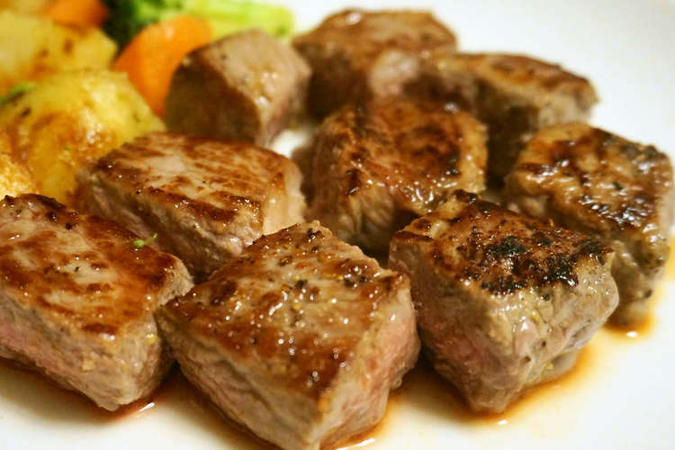 牛角切りステーキサイコロステーキ簡単上手な焼き方 レシピ 作り方 By メルモのまま 楽天レシピ