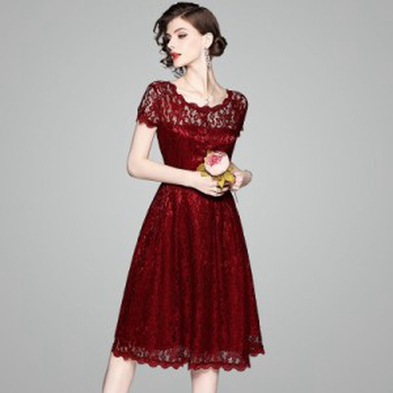 パーティードレス 赤 ひざ下丈 半袖 総レース 結婚式 二次会 ワンピース お呼ばれ 20代 30代 40代 春夏 通販 Lineポイント最大1 0 Get Lineショッピング